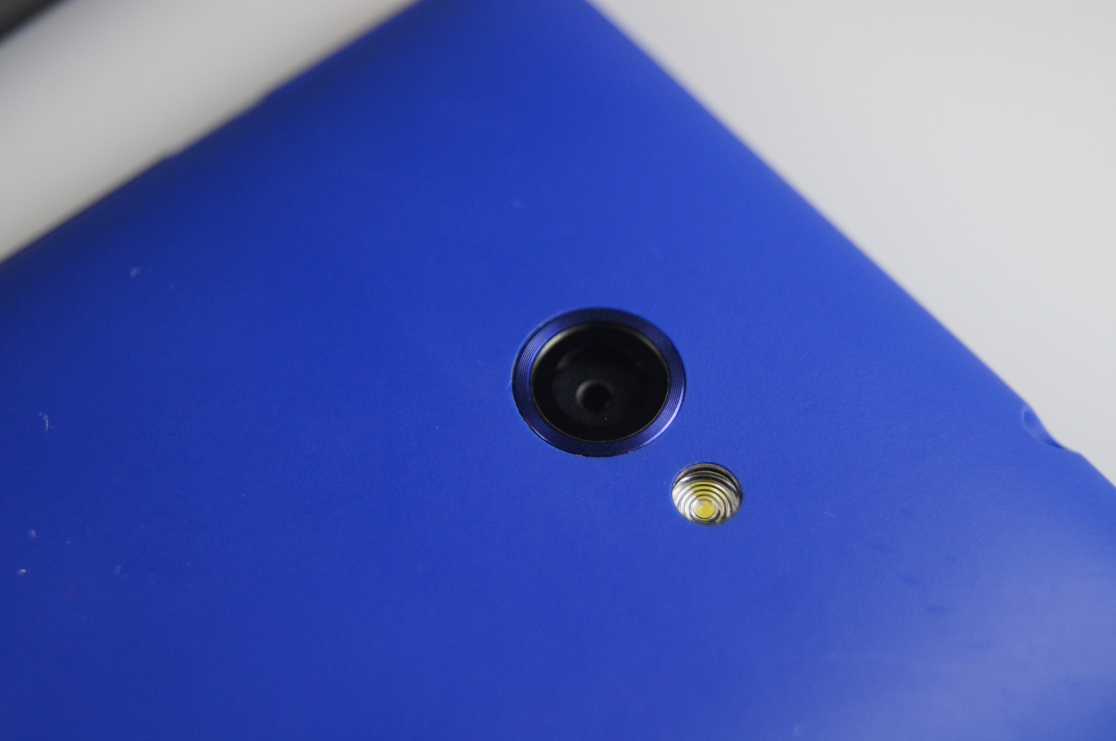 Senzorul de 8 Megapixeli este dispus central, în partea superioară, pe spatele telefonului. Lângă el se află un LED flash destul de puternic și ceva cam intruziv. Cum spuneam, camera foto poate fi activată de la o tastă dedicată / buton dispus pe lateral. Aplicația foto se deschide rapid, simplă și bine organizată. Captează fotografiile rapid, dispune și de touch focus.