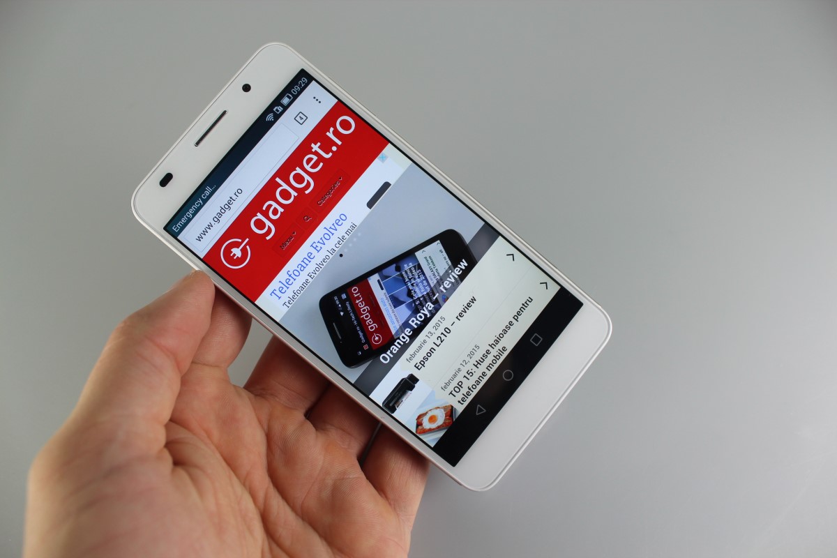 În pachet dați de smartphone, 2 folii de protecție pentru display-ul de 5 inch + instrucțiuni de aplicare, certificat de garanție și ghid de pornire rapidă, cablu microUSB – USB 2.0, încărcător pe USB 2.0 + adaptor pentru România. Lipsesc căștile din pachet.