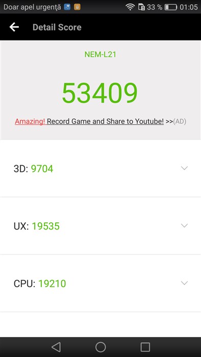 Testele de benchmark rulate pe Huawei Honor 7 Lite;