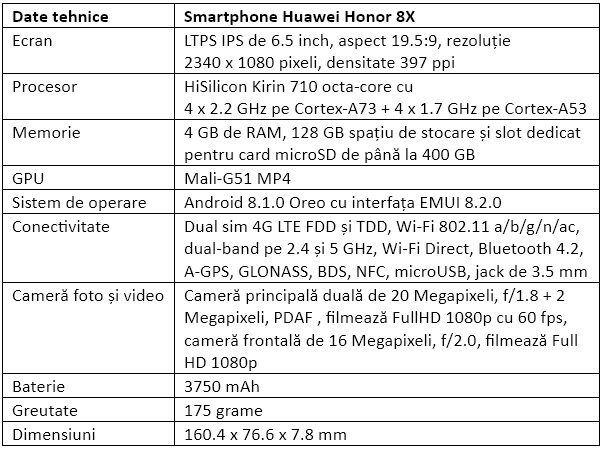 Specificații pentru Huawei Honor 8X: