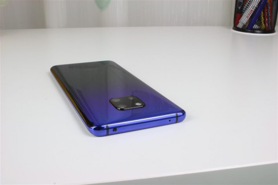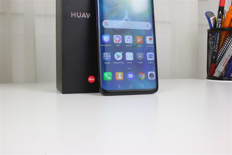 Avem sticlă pe față și spate, înțeleg că au folosit Corning Gorilla Glass, nu doar o sticlă comună precum la P20 Pro. Colțurile sunt rotunjite, camera cu cei trei senzori iese puțin de tot în relief, dar asta și pentru că lipsește OIS-ul la cei doi senzori de 40 și 20 Megapixeli, a fost păstrat doar la tele-ul de 8 Megapixeli. Logo-urile Huawei și Leica sunt stilizate într-un mod neintruziv în partea spate.