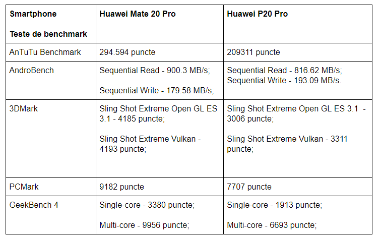 Teste de benchmark rulate pe Huawei Mate 20 Pro;