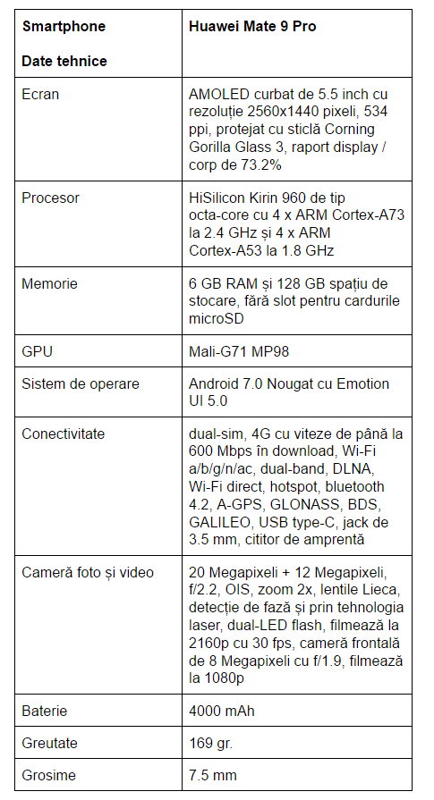 Huawei Mate 9 Pro este un phablet complet, din absolut toate punctele de vedere. Nu s-a făcut niciun compromis în realizare sa și asta se vede în experiența de utilizare oferită. Cine dorește cel mai bun dispozitiv de la Huawei, îl are pe Mate 9 Pro de luat în calcul. Cine îl alege în detrimentul lui S8 sau LG G6 spun de pe acum că nu va regreta alegerea făcută. Este diferit de cele două, dimensiuni, display, optică a camerei foto și video, modul în care au implementat Android-ul etc. Totuși, ai un pachet excelent calibrat.