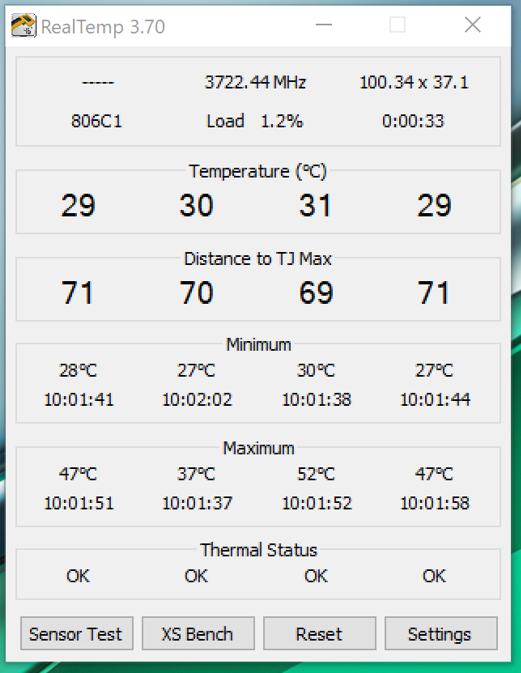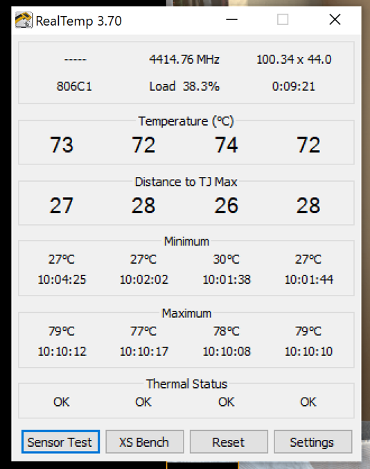 Informații despre temperatura procesorului înainte și după efectuarea unui test de benchmark;