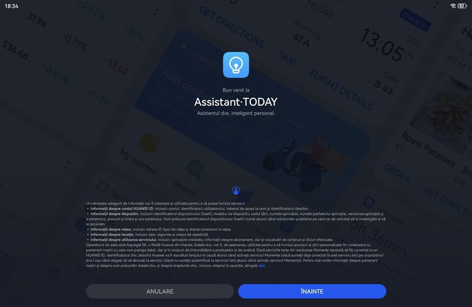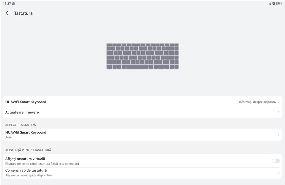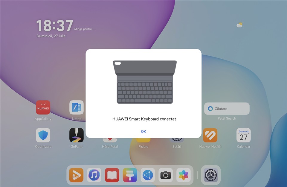 - husa cu tastatură Huawei Smart Keyboard cu care tableta vine la pachet o transformă pe aceasta într-un mini laptop;