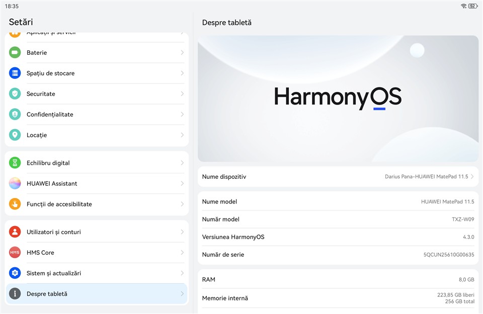 Trebuie spus că Harmony OS 4.3.0 rulează fluid și rapid tot timpul, nu simți niciodată că Huawei MatePad 11.5 2025 PaperMatte Edition este cumva submotorizată, cum s-ar spune. Optimizarea software este la cote înalte, experiența de utilizare este astfel una de top.
