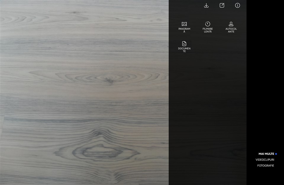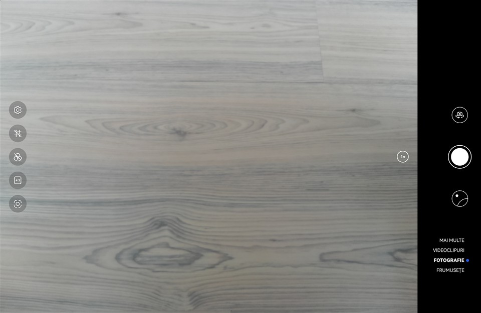 Aplicația Camera este foarte aerisită, să zicem, fiindcă nu sunt multe opțiuni acolo, asta fiindcă avem doar doi senzori, unul pe spate și cel frontal, și nici aceștia nu sunt prea capabili, așa cum vom vedea mai jos, deci nu merită să le fie puse în sarcină moduri speciale de captare.