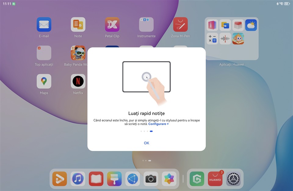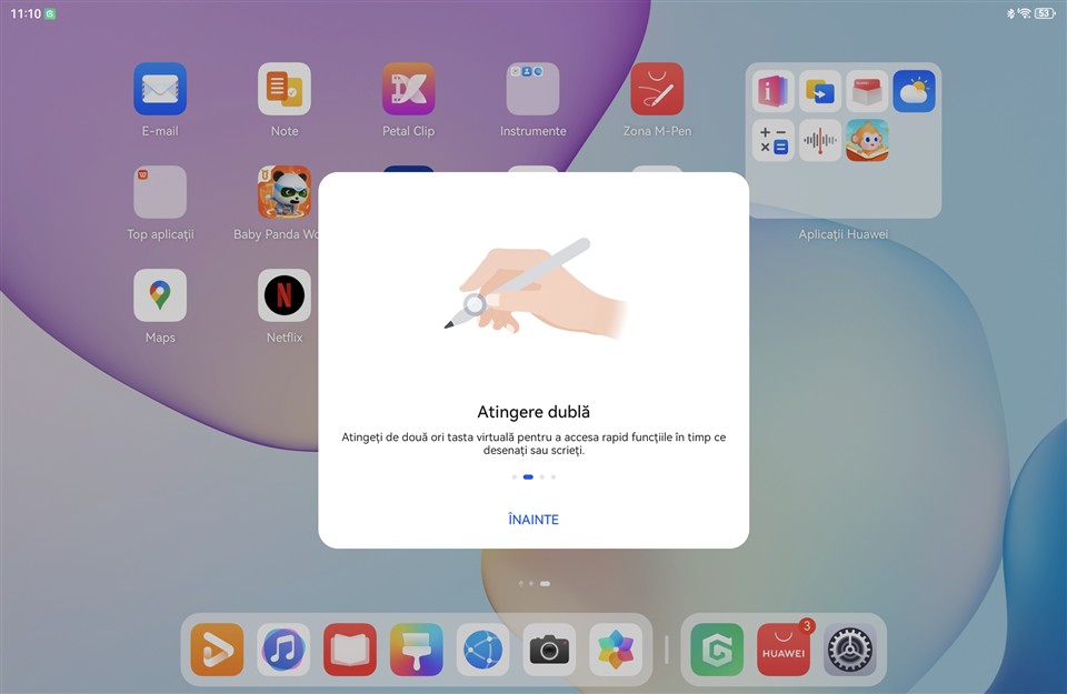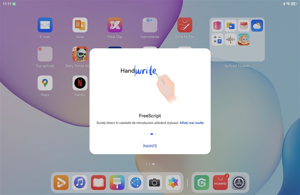Merită menționată aplicația Notițe, care recunoaște scrisul de mână și-l transformă precis în text de tipar, iar asta este foarte bine implementat alături de stylus-ul Huawei M-Pencil 3rd gen. Totodată, pentru cei mai creativi sau care vor să se relaxeze prin desen, există aplicația GoPaint, plină de instrumente utile spre a-i ajuta să deseneze mai bine chiar și pe cei mai puțin talentați.