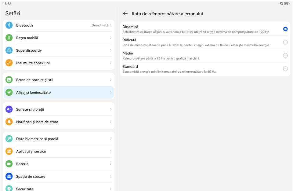 Luminozitatea maximă nu este uriașă, dar nici nu ai nevoie de așa ceva la Huawei MatePad 11.5 2025 PaperMatte Edition, tocmai datorită faptului că reflexii nu există. Culorile, așa cum spuneam, sunt foarte exacte, naturale și suficient de vii, de aprinse. Contrastul nu se ridică la nivelul unui panou OLED, dar este mai mult decât decent, cu un negru suficient de adânc.