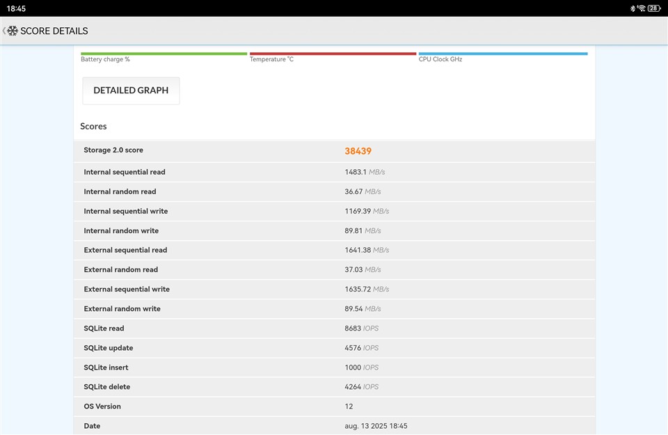 | PCMark 10 Work 3.0 Performance Storage Internal sequential read Internal sequential write | nu a rulat 38439 puncte 1483.1 MB/s 1169.39 MB/s |
