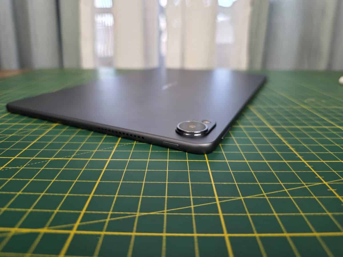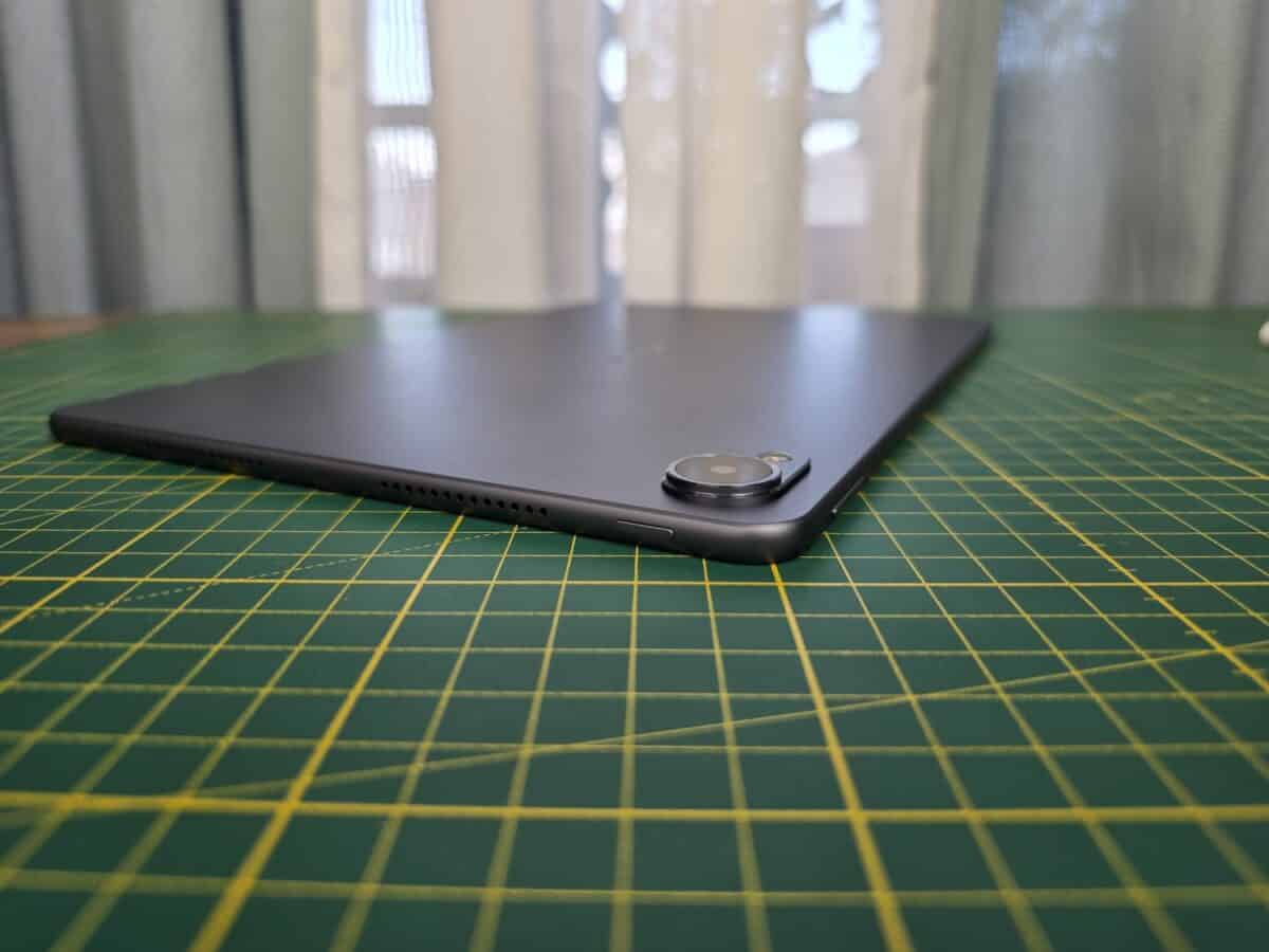 În ce privește designul nu sunt prea multe comentarii de făcut. Este o tabletă cu structură de rezistență din aluminiu și spate din aluminiu, cântărește 515 gr. și are 6.1 mm în talie, discutăm despre o tabletă cu display de 11.5 inci.