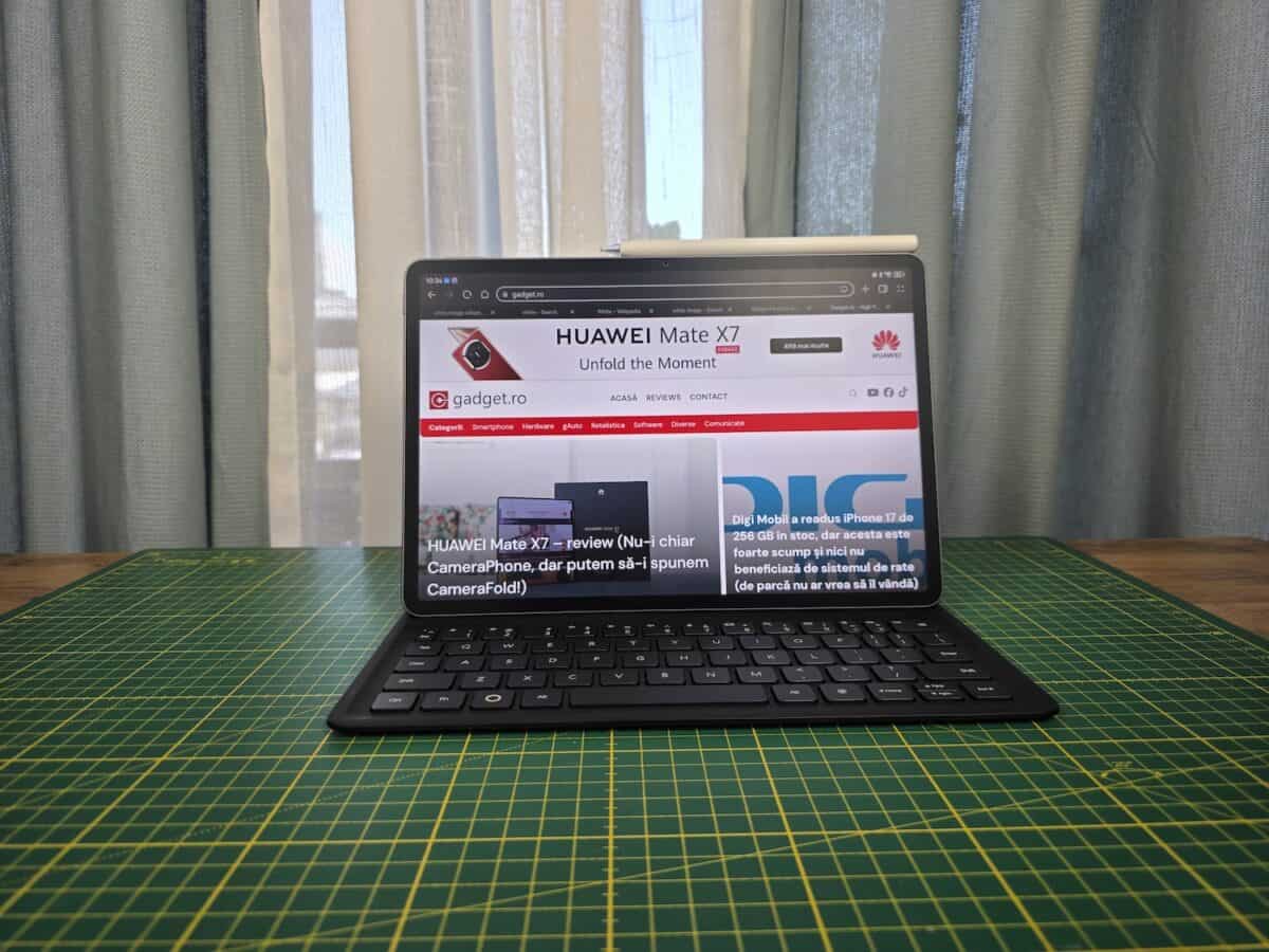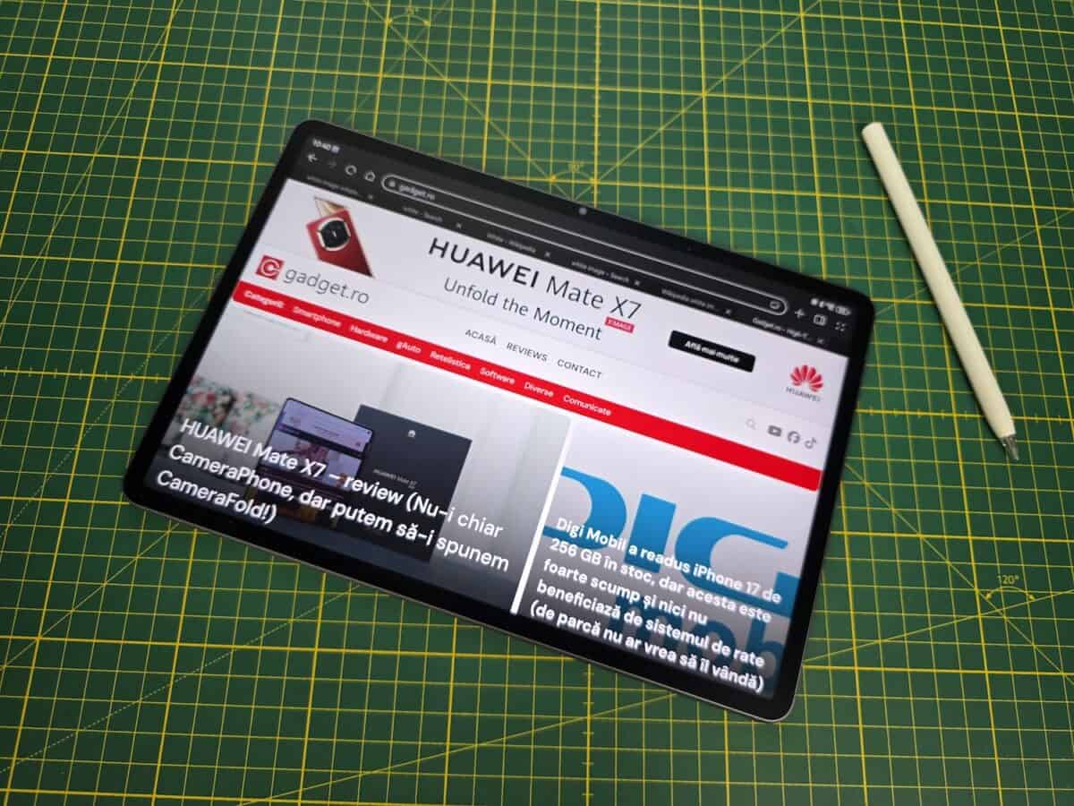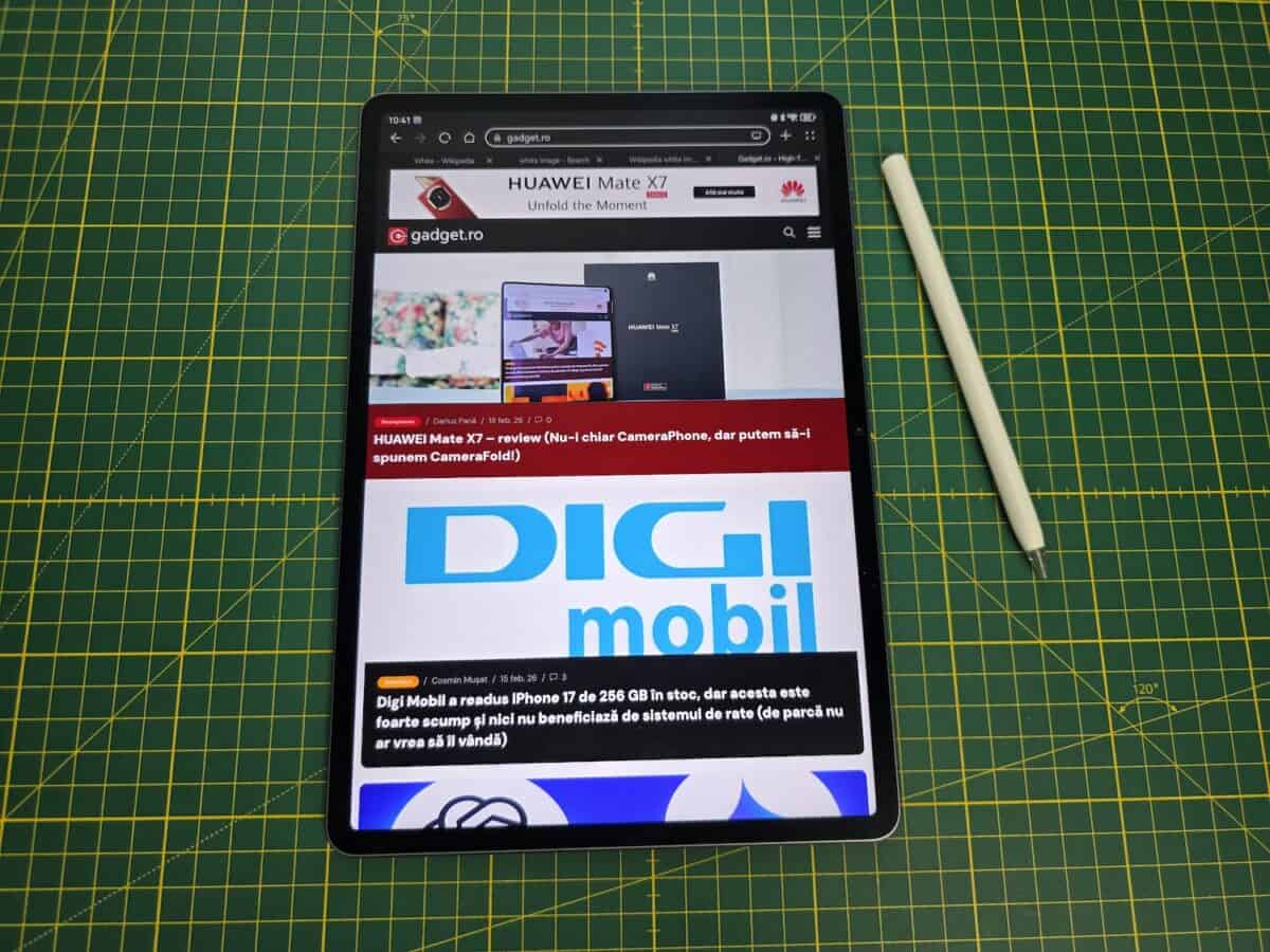 Aș puncta faptul că am primit tableta la test cu Huawei M Pencil Pro și nu cu M Pencil din a 3-a generație pe care-l va avea în pachet. La fel, în pachetul meu de test avea și un încărcător Huawei de 40W, încărcător ce nu se va regăsi în pachet cu tableta prin Huawei Store și în ce alte magazine o mai aduc oficial.