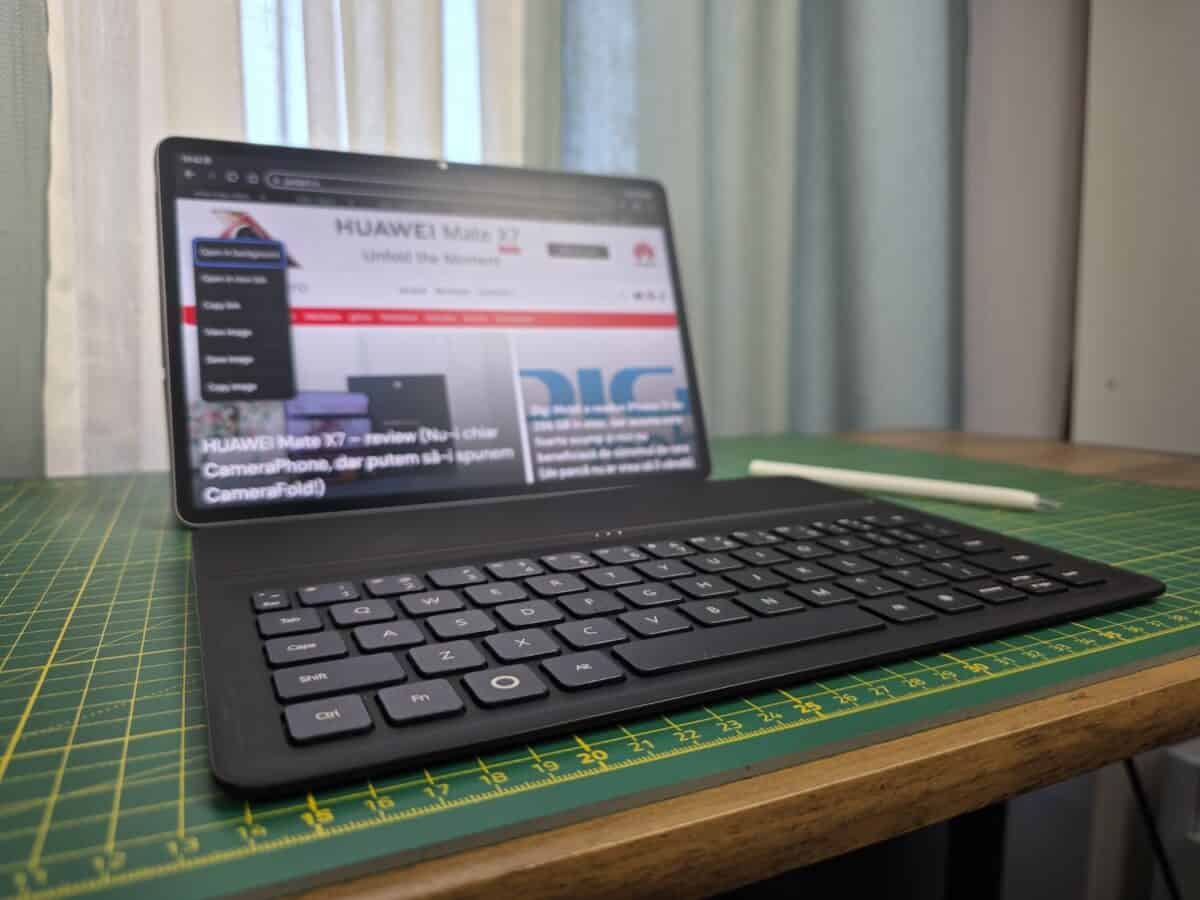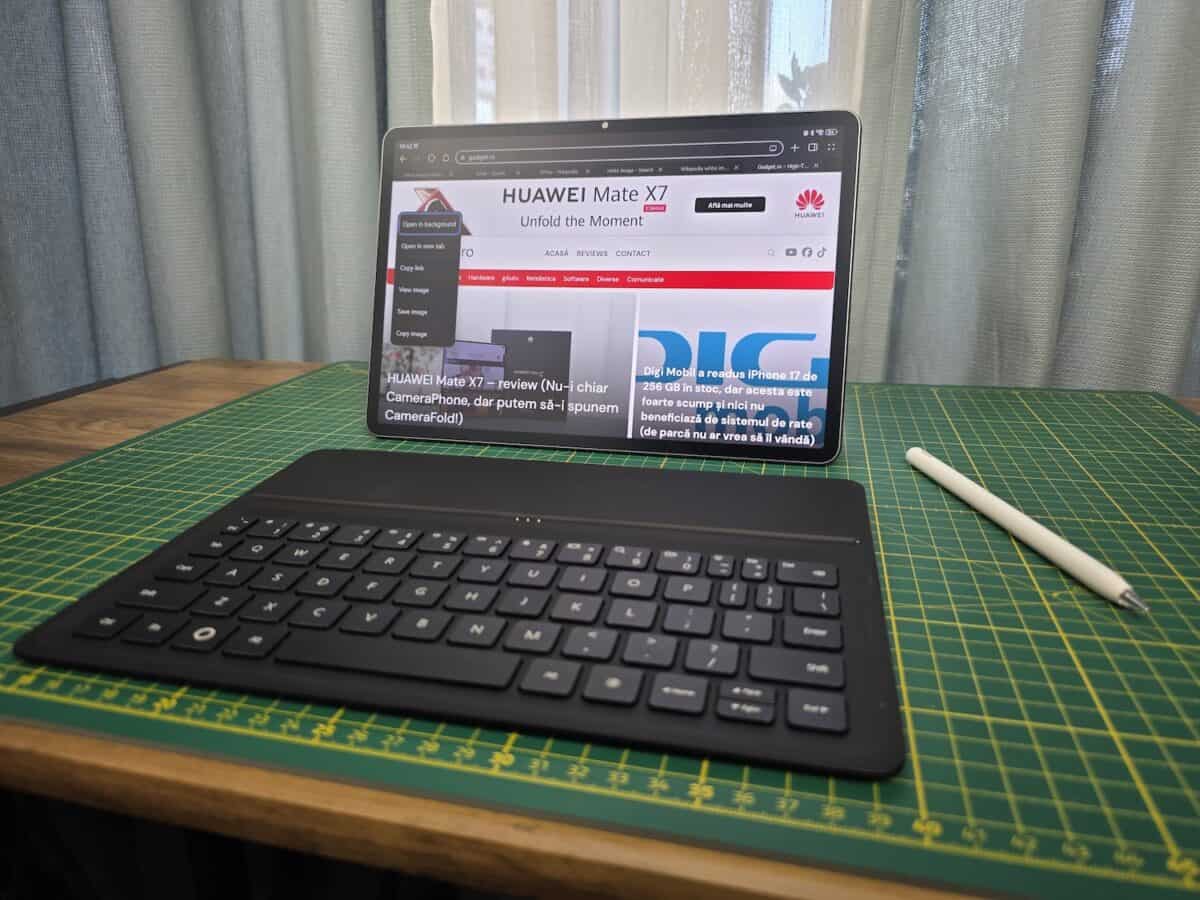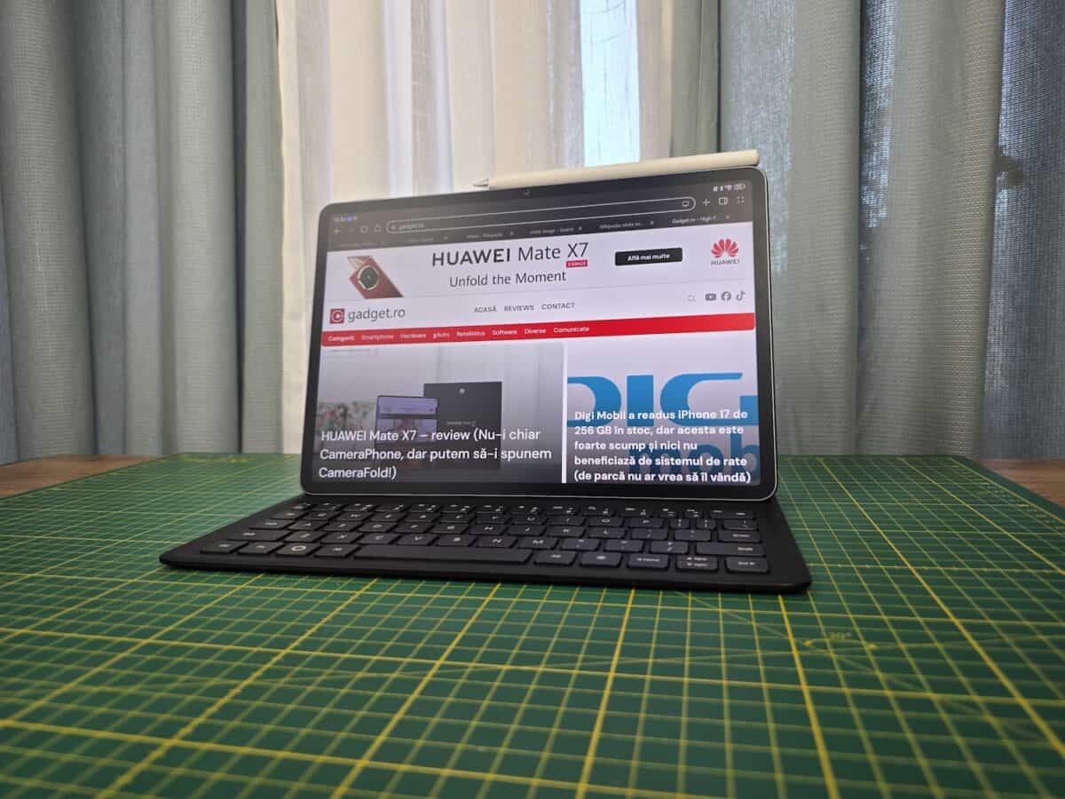 Aș puncta faptul că am primit tableta la test cu Huawei M Pencil Pro și nu cu M Pencil din a 3-a generație pe care-l va avea în pachet. La fel, în pachetul meu de test avea și un încărcător Huawei de 40W, încărcător ce nu se va regăsi în pachet cu tableta prin Huawei Store și în ce alte magazine o mai aduc oficial.