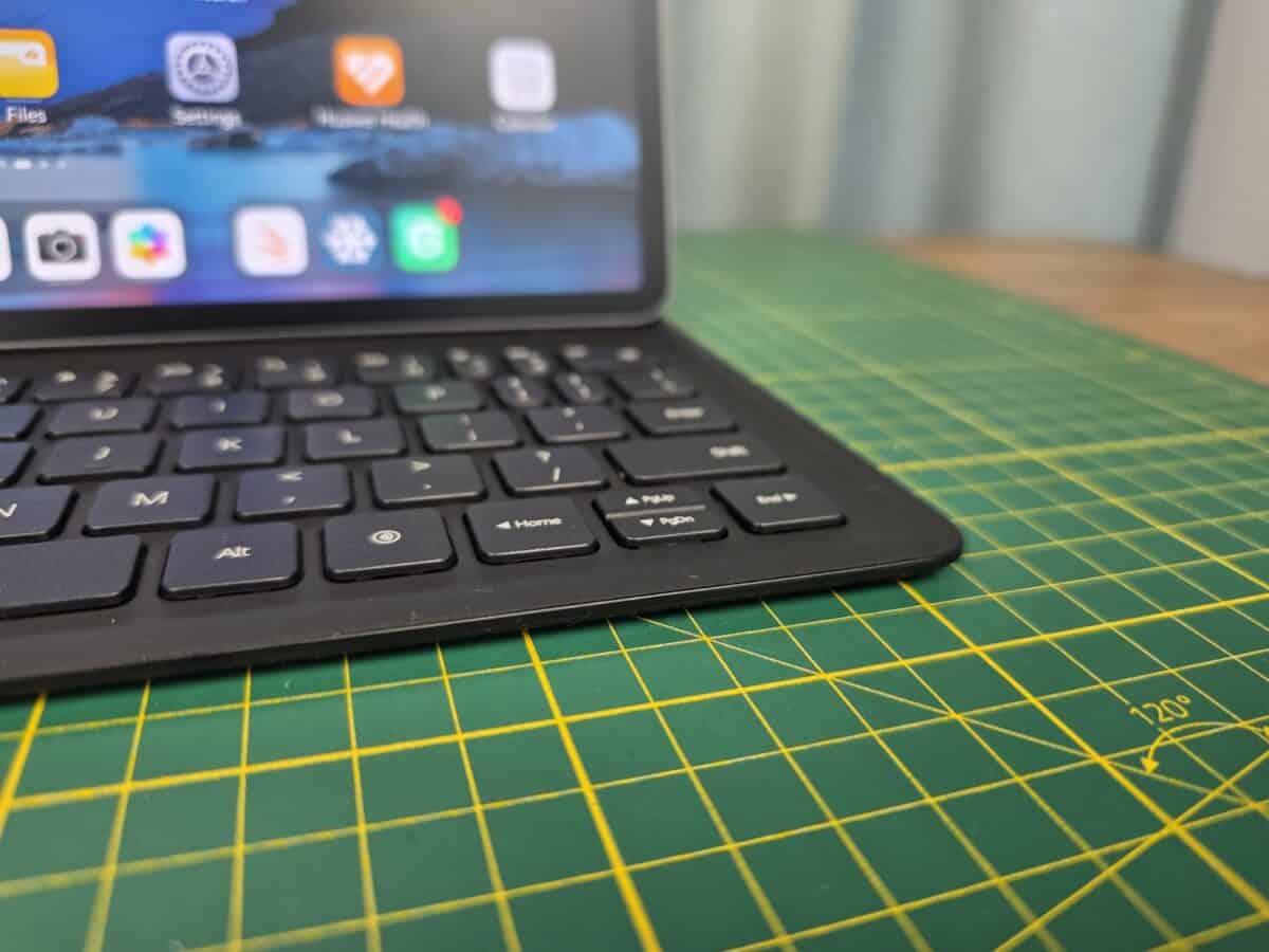 Husa cu tastatură nu are touchpad, dar ai control tactil pentru anumite comenzi. Cursa tastelor de 1.5 mm mi-a amintit de feedback-ul pe care-l primesc de la tastatura Apple Magic.