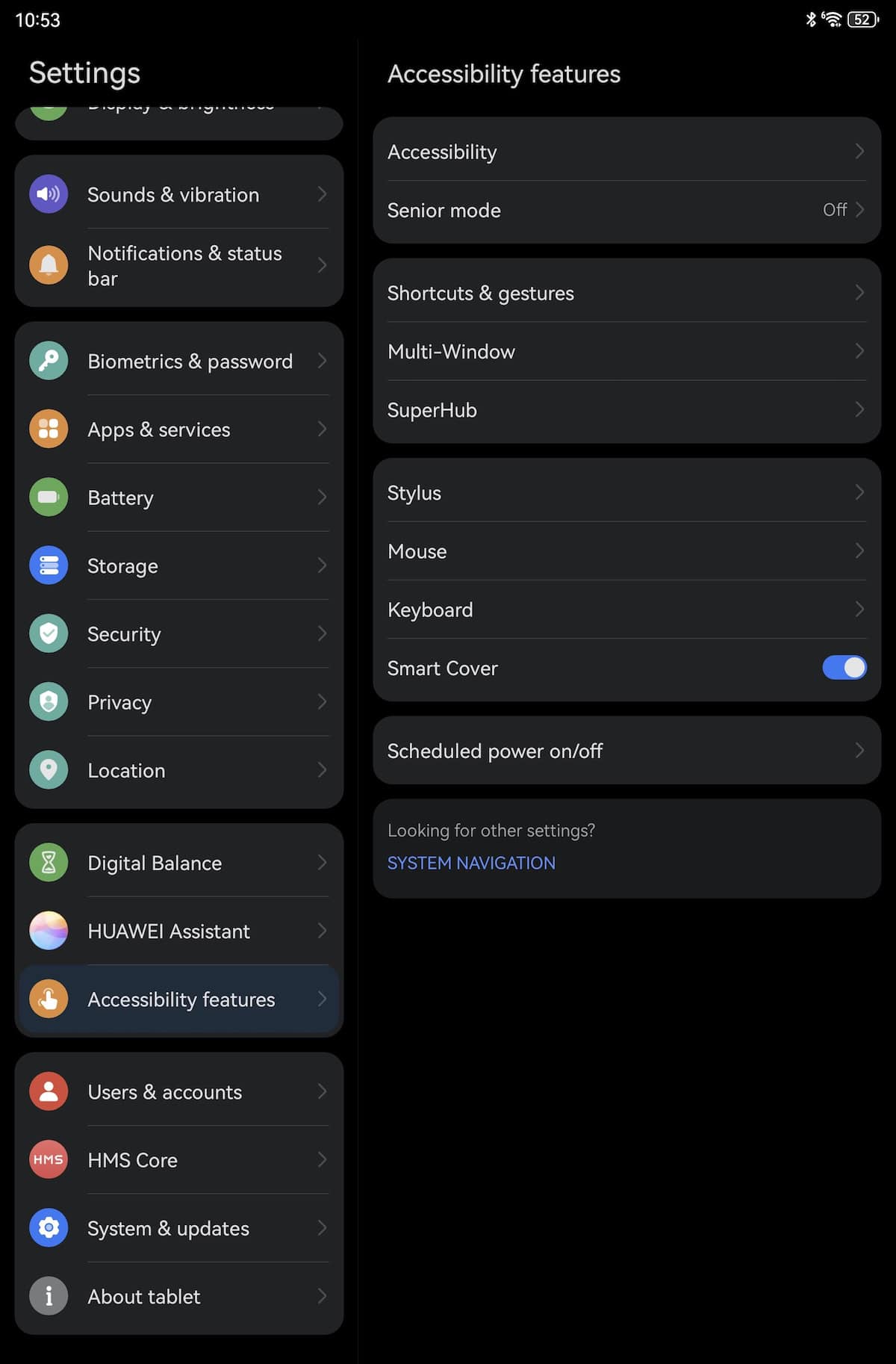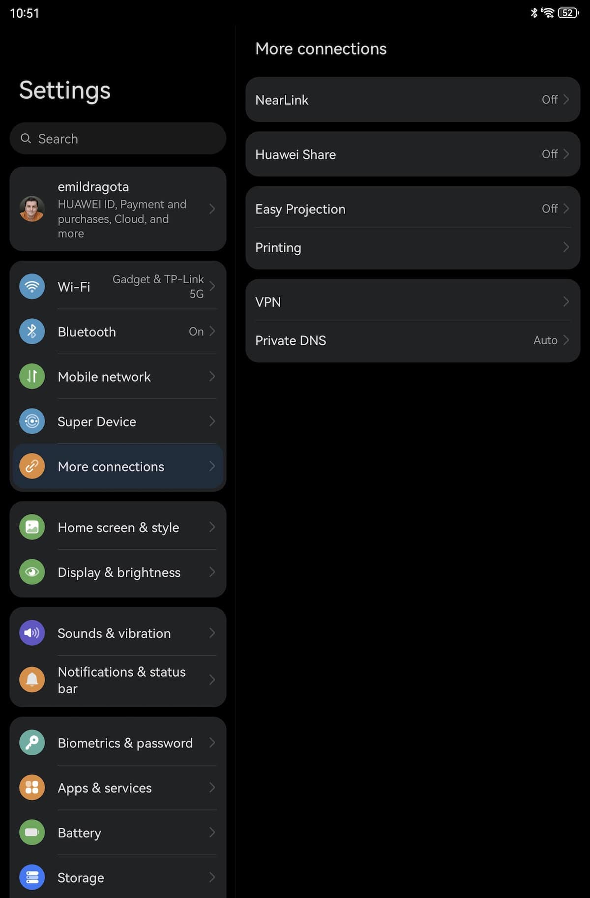 Este o tabletă dual-band cu Wi-Fi 6, bluetooth 5.2 și USB Type-C 3.1. Nu are conexiune de date, dar se rezolvă cu hotspot făcut de pe telefonul mobil, la nevoie.