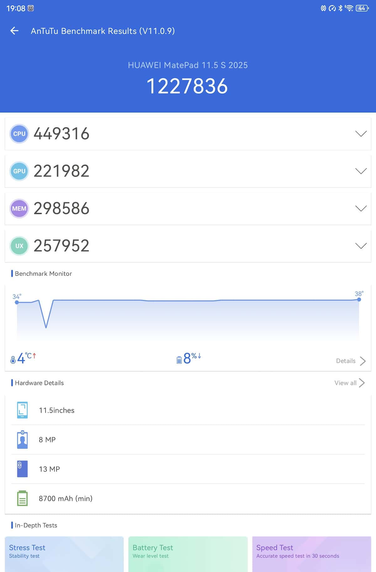 Teste de benchmark rulate pe Huawei MatePad 11.5 S 2026: