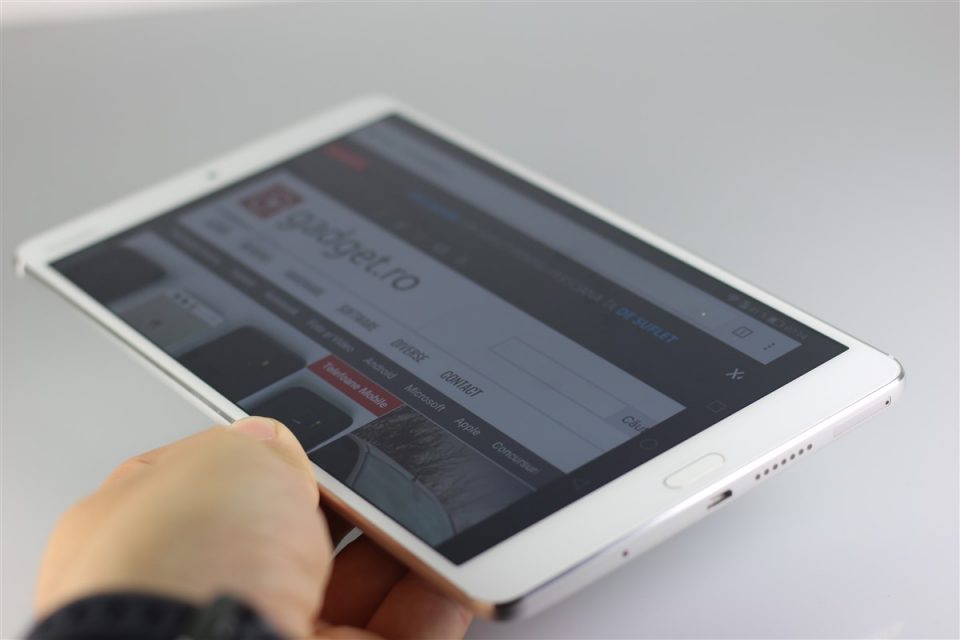 Huawei MediaPad M3 impresionează prin calitatea fabricației, prin materialele utilizate. Avem o carcasă unibody din aluminiu ce imprimă ideea de rezistență în timp, spatele deși îmbrăcat în aluminiu, nu adună zgârieturile și gripul oferit = decent. Marginile spate sunt ușor curbate și asta face produsul să pice mai bine în mână.