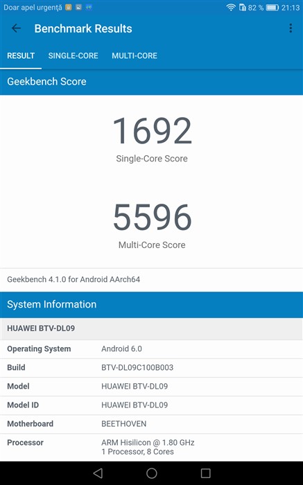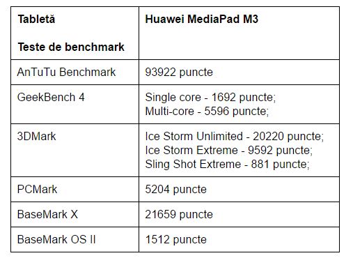 Teste de benchmark rulate pe Huawei MediaPad M3;