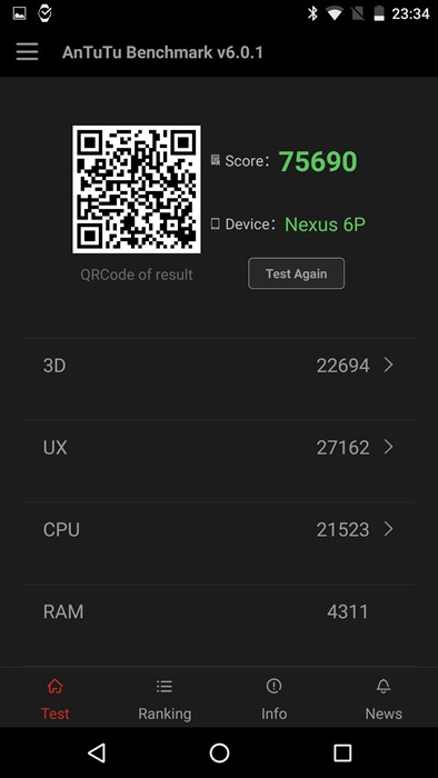 Revin la subiect, specificațiile hardware de pe Nexus 6P-ul testat – Qualcomm Snapdragon 810 de tip octa-core pe big.LITTLE cu 4 x ARM Cortex-A57 la 2.0 GHz + 4 x ARM Cortex-A53 la 1.55 GHz, 3 GB RAM, 128 GB spațiu de stocare.