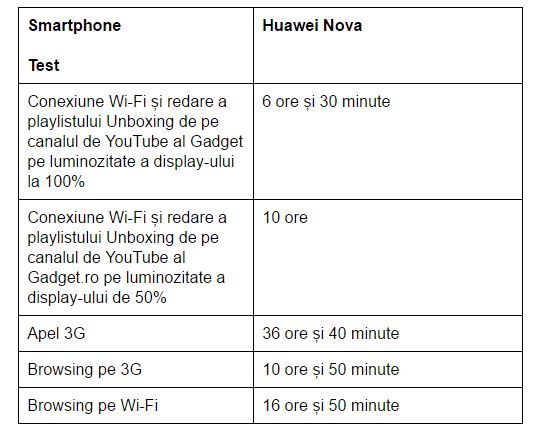 Bateria de 3020 mAh dispune de încărcare rapidă, iar Huawei Nova în condiții de utilizare moderate spre intensive te duce de dimineața până seara. L-aș cataloga drept decent, nu spectaculos.