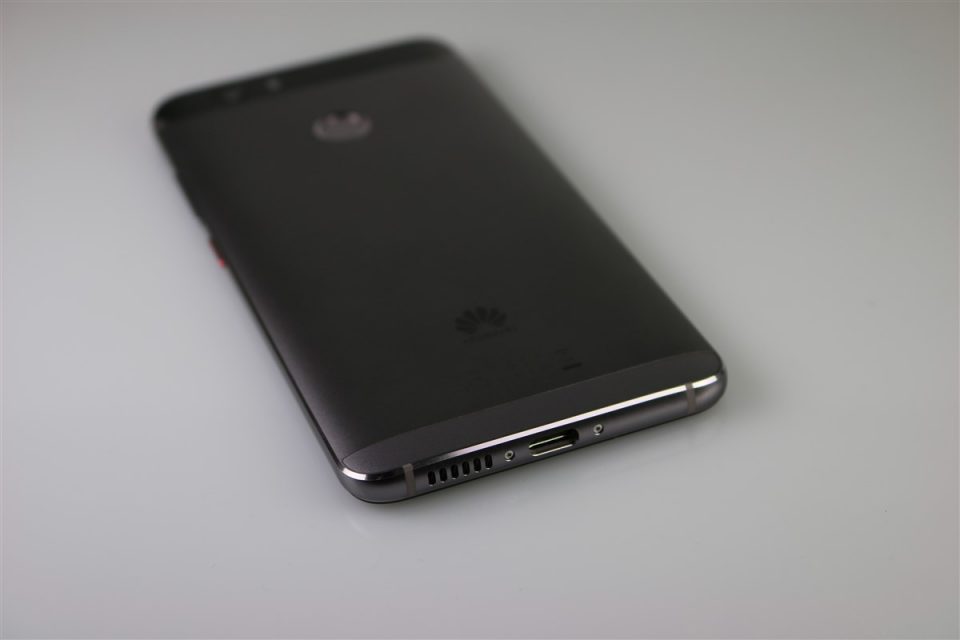 Logo-ul Huawei se regăsește în partea frontală, sub ecran. În spate se remarcă cititorul de amprentă poziționat în partea superioară – central, camera de 12 Megapixeli într-un colț al terminalului.