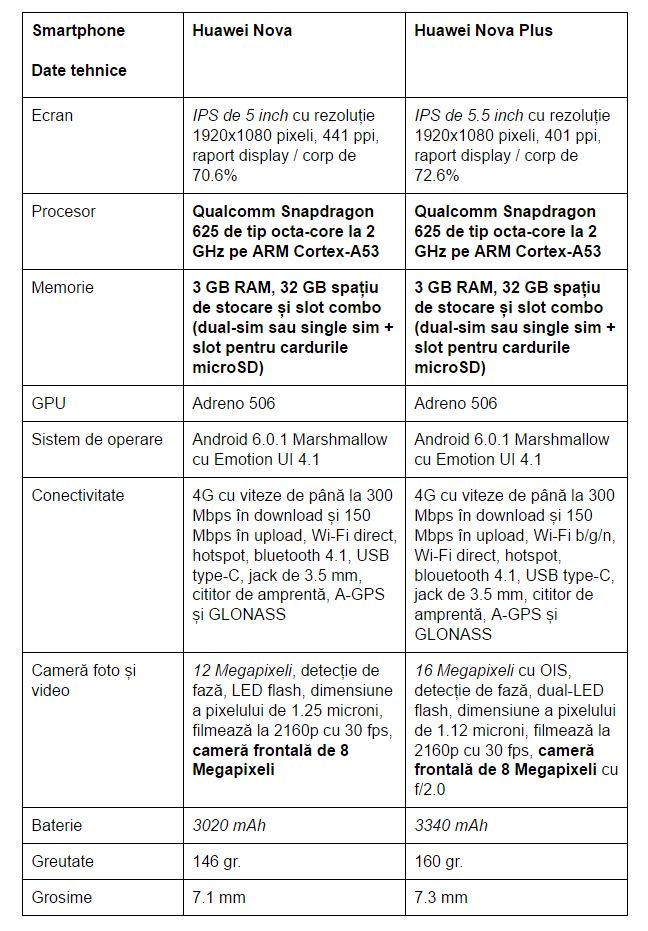 Care sunt diferențele și asemănările dintre Huawei Nova și Huawei Nova Plus?