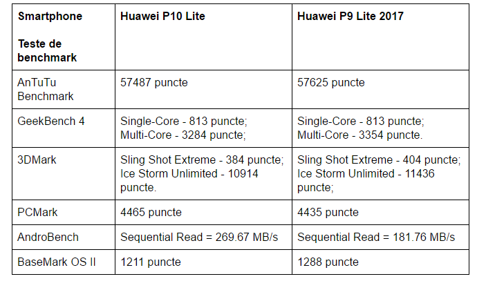 Teste de benchmark rulate pe Huawei P10 Lite;
