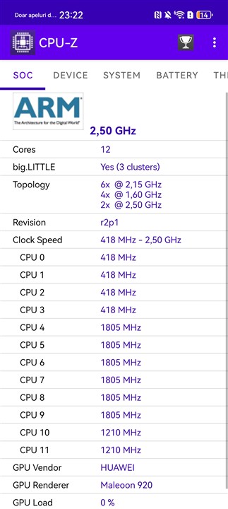 Și aici pot spune că avem mici modificări, mici îmbunătățiri, chiar dacă nu poate fi vorba despre ceva substanțial. Kirin 9020 este o evoluție, așa cum sugerează și denumirea, a chipset-ului Kirin 9010 de pe Huawei Pura 70 Ultra. Avem acum o frecvență ceva mai ridicată pe nucleele Taishan Big, dar nimic ieșit din comun. Și la GPU mi s-a părut că Maleoon 920 este ceva mai puternic decât Maleoon 910 de pe Pura 70 Ultra, chiar dacă, din nou, nimic excepțional. Dar există o îmbunătățire perceptibilă în jocurile grele.