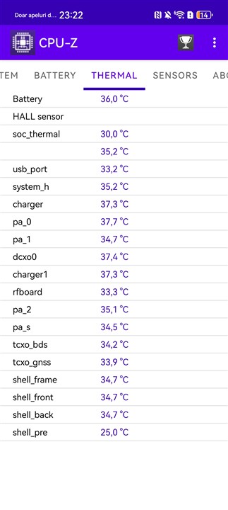 Dacă vorbim despre temperaturile la care ajunge Huawei Pura 80 Ultra în timpul solicitărilor serioase, așa cum sunt majoritatea testelor de benchmark de mai sus, atunci trebuie să știm că telefonul se încălzește cel mai serios pe suprafața ecranului, dar și pe spate este evident mai fierbinte. Nu-i neapărat îngrijorător, am testat smartphone-uri cu Snapdragon 8 Elite care se încingeau mult, mult mai tare, dar, în același timp, acel chipset este și cu mult, mult mai puternic decât Kirin 9020.