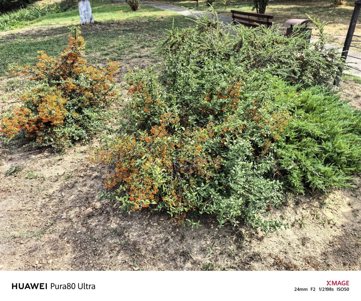 Înainte de a vedea exemple de fotografii, trebuie neapărat să adaug și că mai există ceva în plus la Huawei Pura 80 Ultra față de generația trecută, tot la ansamblul de senzori de pe spate. Mă refer la senzorul Ultra Chroma, care poate recunoaște peste 1.5 milioane de canale de spectru al culorii, ceea ce înseamnă mai apoi o reprezentare mult mai exactă a fiecărei nuanțe din cadru, iar asta indiferent de senzorul foto de pe spate folosit. Este o implementare foarte apropiată de ceea ce am văzut la Huawei Mate X6.
