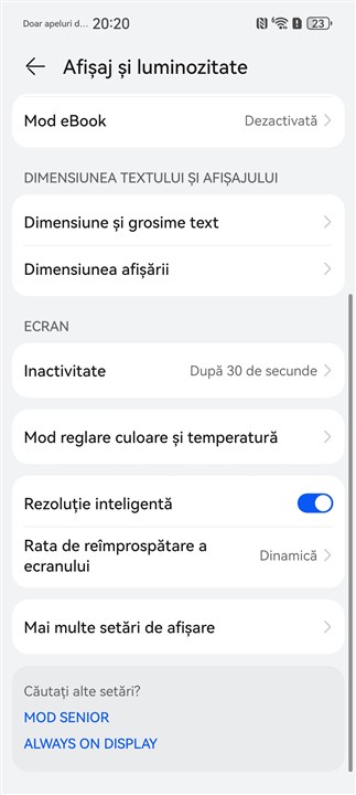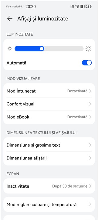Capturi de ecran din meniul cu setări ale afișajului de pe Huawei Pura 80 Ultra: