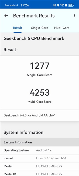 Testele de benchmark rulate pe Huawei Pura 80 Ultra: