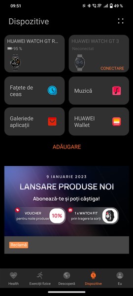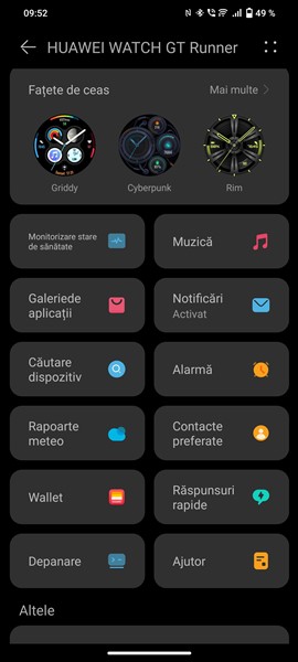 - Huawei Health cu sute de fațete pentru ceas, câteva aplicații și funcții de tracking avansate;