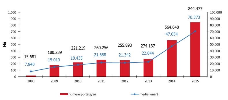 Anul 2015 a fost cel în care portarea de numere a explodat. Dacă până în 2013 media anuală de portări era de puţin peste 250.000 de numere, 2014 cu peste 560.000 de numere, dar mai ales 2015 cu peste 840.000 de numere au demonstrat că românul este foarte sensibil la preţ, dar mai ales la oferte.