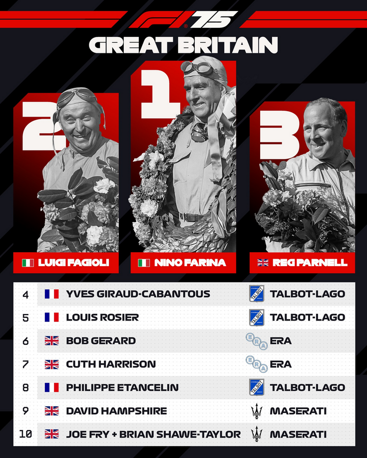 Revenind la prima cursă din istoria Formulei 1, aceasta a avut 70 de tururi (un total de peste 325 de kilometri parcurşi), la start au fost 21 de piloţi de la echipe precum Alfa Romeo, Maserati, Talbot-Lago şi ERA, iar cel mai rapid tur a fost făcut de Giuseppe „Nino” Farina cu un timp de 1:50,6.