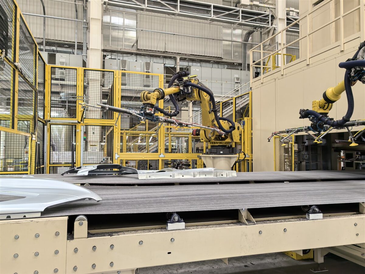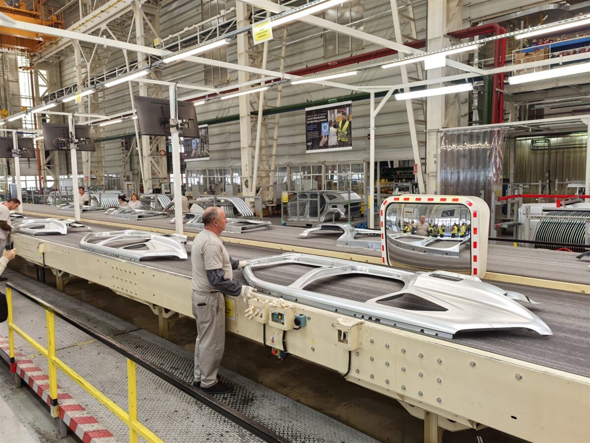 - În secția Caroserii aproximativ 60% din operațiuni sunt executate acum robotizat, restul manual. Spre comparație, la jumătatea anului 2023 aveam un procent pentru robotizare de 44%, din nou o îmbunătățire semnificativă într-un timp atât de scurt. Sunt 550 de roboți în această secție, care se ocupă, printre altele, de sudurile mari, în timp ce sudurile pieselor mai mici sunt executate manual. Durata medie de execuție a unei caroserii, de la start până la final, este de aproximativ 2.5 – 3 ore, în funcție de model.