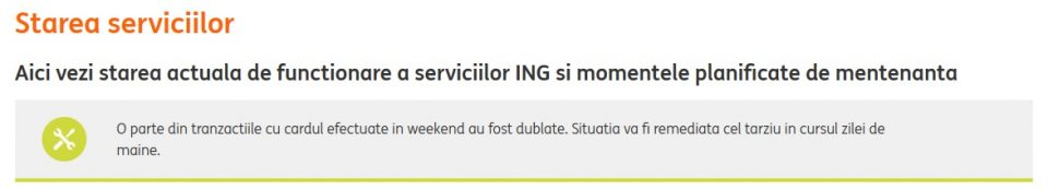 Între timp pe ing.ro la rubrica “Starea serviciilor” a fost postat următorul anunţ: