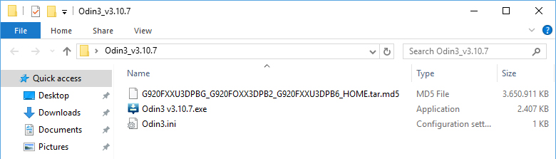 2. Descarcă ROM-ul corect pentru terminalul tău folosind linkurile de mai jos și dezarhivează-l în folderul Odin creat la primul pas astfel încât structura folderului obținut să fie asemănătoare cu cea din imaginea de mai jos. Mentionez ca pentru a descarca ROM-ul vei avea nevoie de un cont Sammobile, cont pe care-l poti crea gratuit facand click aici.
