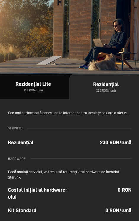 În general pachetul Starlink format din kit + abonament nu este avantajos, coturile acestuia fiind destul de ridicate. În primăvara a existat o ofertă interesantă, dar aceea de obliga să te abonezi minim 12 luni la abonament standard Rezidenţial.