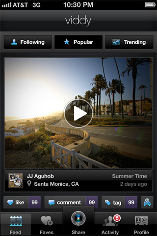 Viddy is a simple way for anyone to capture, beautify, and share amazing videos with the world. Capture key moments of your life, instantly produce it into a beautiful video, and share it with those who matter most.