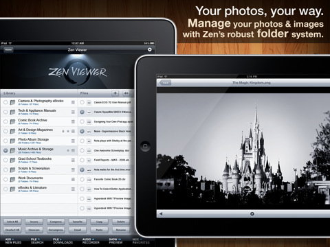 Zen Viewer HD is the critically acclaimed iPad file viewer reader, manager & audio recorder app that unifies your favorite content in one place – read documents, PDFs, books, user manuals, comic books, listen to pre-recorded audio & music files, record & save audio with the built-in recorder, watch video and view photos & images, while utilizing an intuitive folder system and a style unmatched by other file viewers & readers.