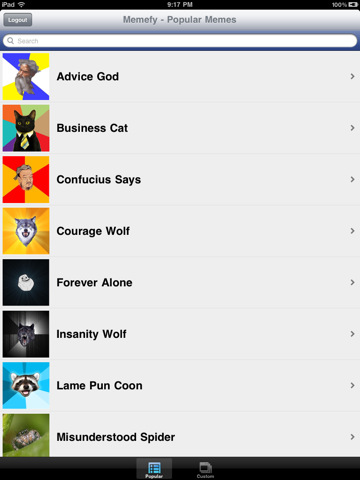 Memefy – este o aplicație doar pentru iPad. Este compatibilă cu iOS 3.2, dar și cu versiunile următoare. Costul acestei aplicației este de 0.99$.