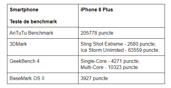 Teste de benchmark rulate pe iPhone 8 Plus;