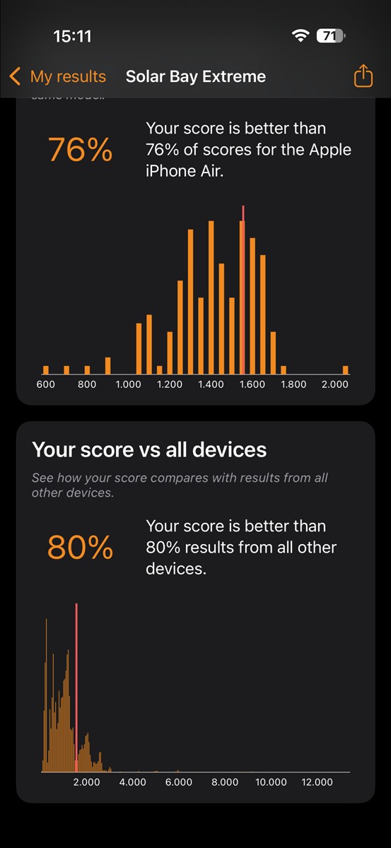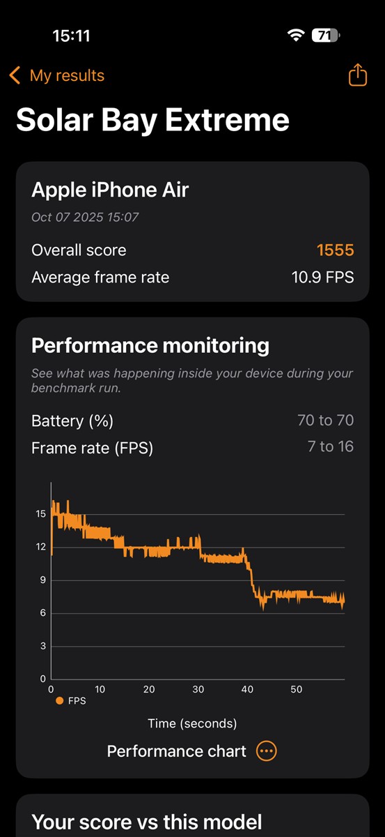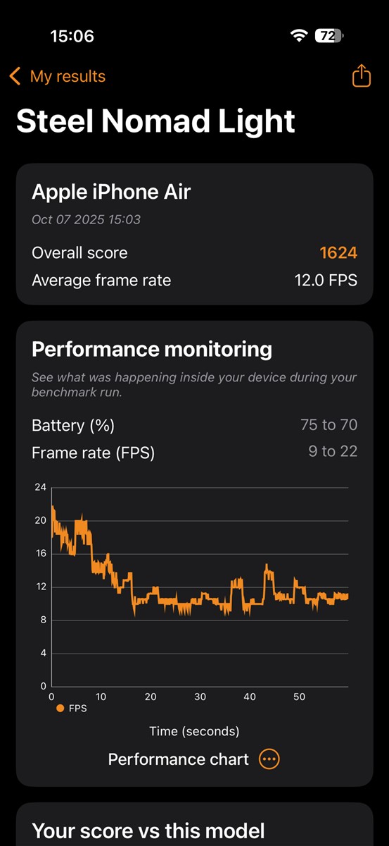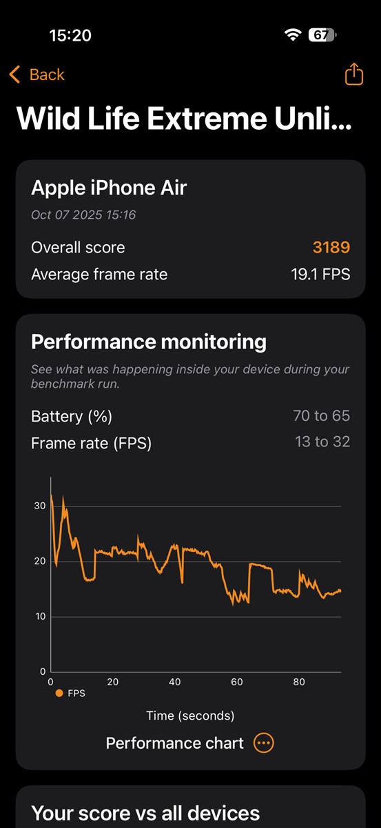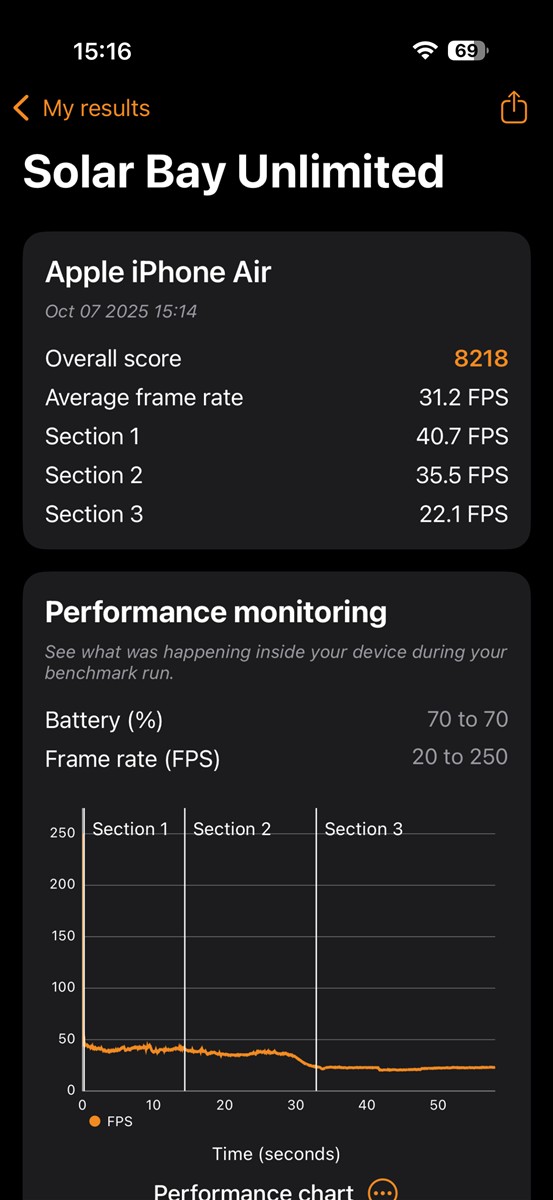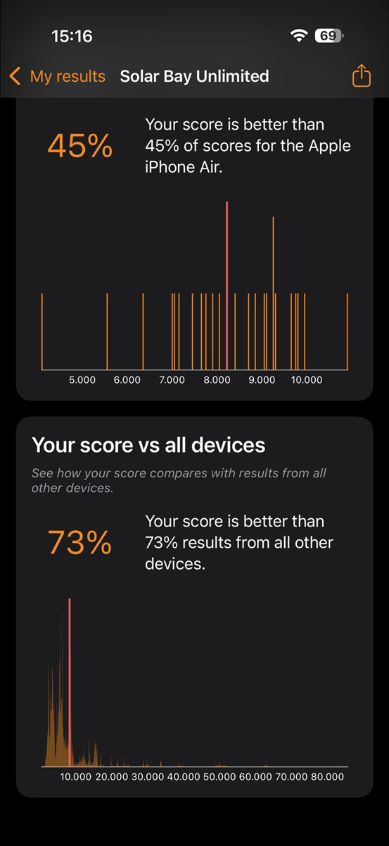 M-aș fi așteptat să stea mai prost aici, dar mi-a depășit așteptările. Autonomia oferită de iPhone Air este în linie cu ce aduce Galaxy S25 Ultra cu acumulatorul său de 5000 mAh.