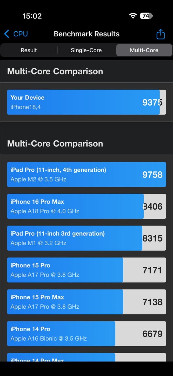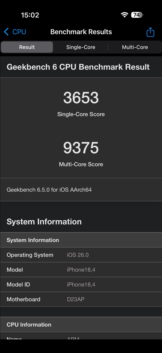Au pus procesorul de pe iPhone 17 Pro și Pro Max, dar cu acceleratorul grafic de pe iPhone 17 ce are 5 nuclee și nu 6 nuclee. Este ajutat de 12 GB RAM și 256 / 512 sau 1 TB stocare, cum este și unitatea de față.