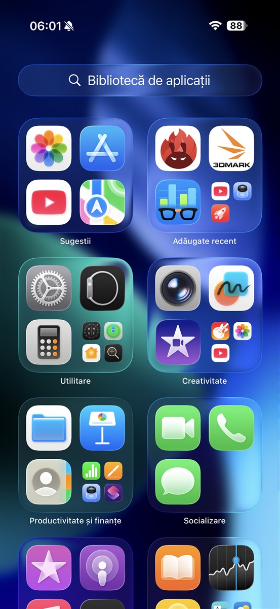 iOS 26 iese în față cu așa-numitul Liquid Glass. Sunt ceva schimbări la nivel de UI, dar nimic cu adevărat revoluționar.