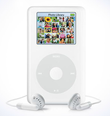 Octombrie 2004 – al doilea model al generaţiei a patra iPod :)). Avea capacitate de a arăta fotografii pe display-ul color, cu posibilitatea de conectare la un Tv pentru modul slideshow la un preţ de 500 de dolari varianta de 40 de GB şi 600 de dolari pentru cea de 60 de GB. Produs premium. |