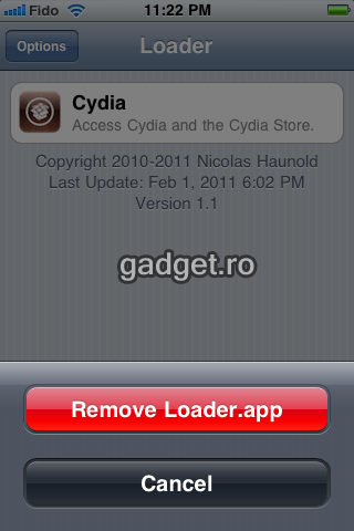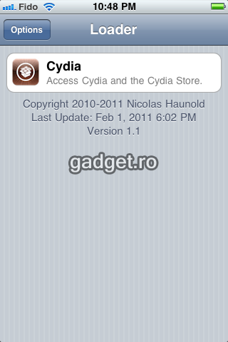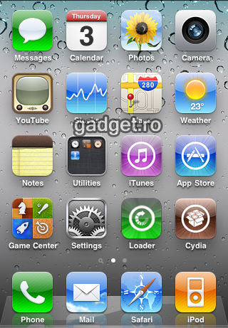 10. Dupa ce iDevice-ul s-a repornit, vei vedea pe springboard (adica pe ecranul telefonului, unde ai icon-urile) un icon numit „Loader”.