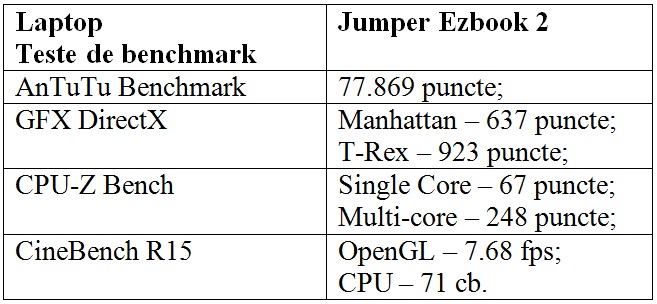 Testele de benchmark rulate pe Jumper Ezbook 2;