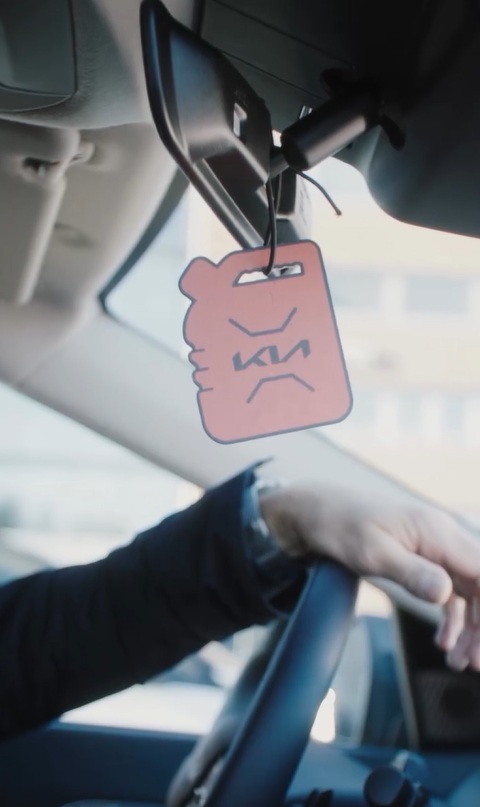 Kia oferă într-o ţară europeană un odorizant auto cu formă de canistră şi cu miros de benzină celor care cumpără o maşină electrică (pentru a se obişnui cu tranziţia)